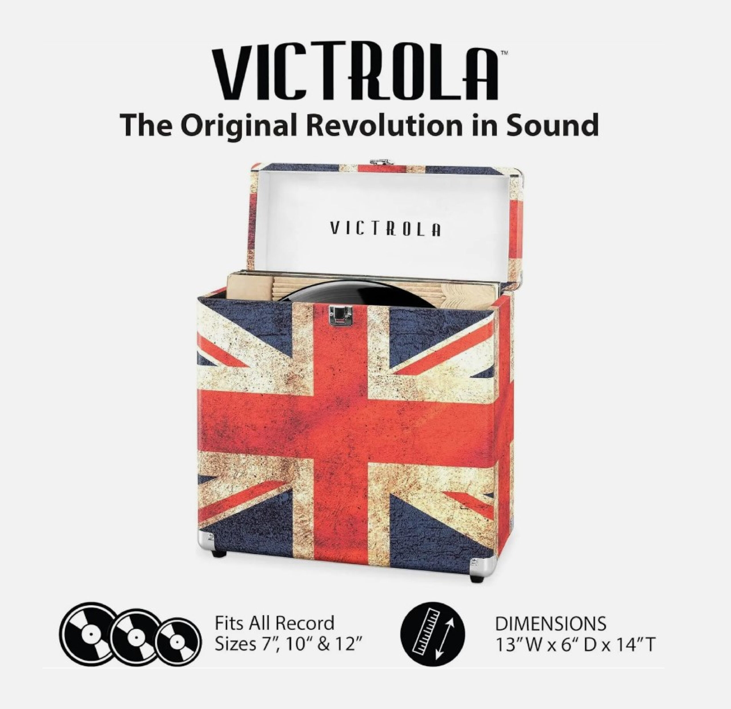 Victrola Vintage Style Vinyl Record Storage and Carrying Case (UNION JACK)