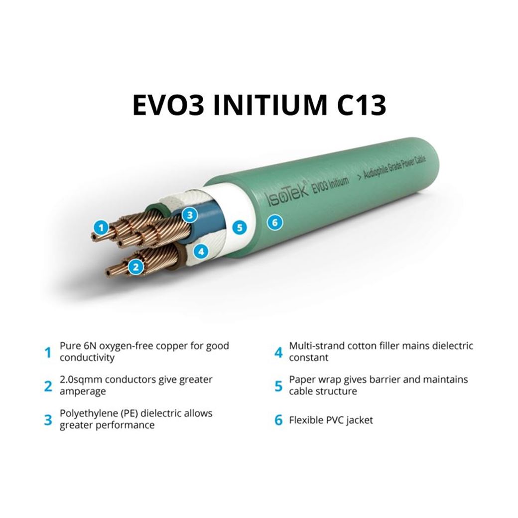 EVO3 Initium is IsoTek’s entry level power cable designed to offer high quality performance at an extremely fair price. Initium is a must for replacing all of your free standard black plastic power leads which have been designed down to a price not up to a quality.