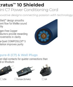 สายไฟรุ่น Shielded Mini Power Conditioning Cord (New Design) จาก Wireworld ถูกออกแบบมาเพื่ออุปกรณ์เครื่องเสียงขนาดเล็กที่ใช้หัว C7 (Figure-8) โดยเฉพาะ เช่น Turntable, Phono Preamp, Streamer, DAC ขนาดเล็ก หรืออุปกรณ์ดิจิทัลต่าง ๆ ที่ต้องการไฟสะอาดและนิ่งขึ้นอย่างชัดเจน
