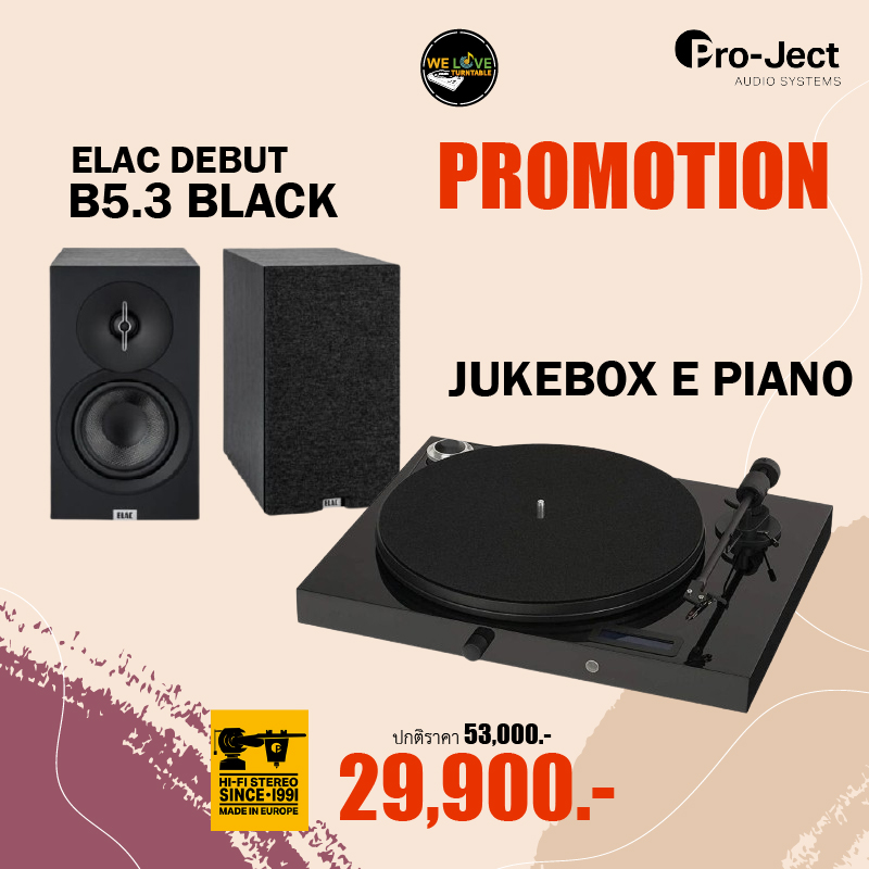 เครื่องเล่นแผ่นเสียง Pro-ject Juke Box E Black + ลำโพง Elac Debut DB5.3 Black (New)