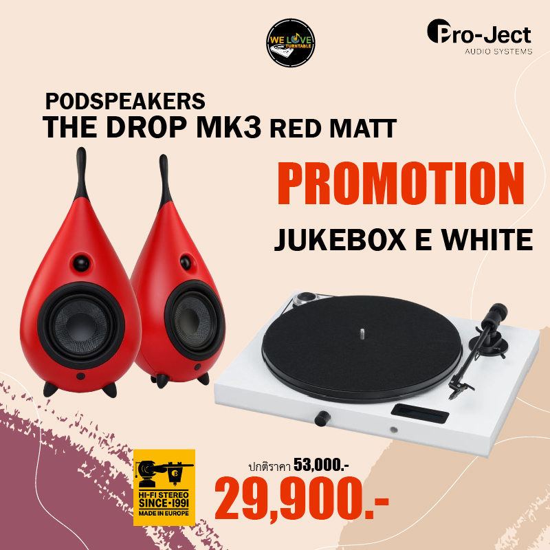 เครื่องเล่นแผ่นเสียง Pro-Ject Juke Box E White + ลำโพง Podspeakers The Drop MK3 Red (New)