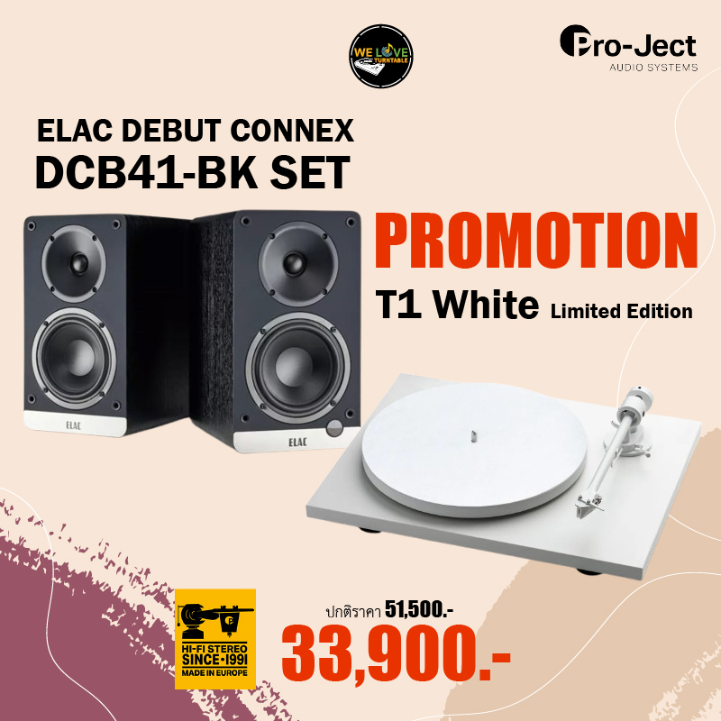 เครื่องเล่นแผ่นเสียง Pro-Ject T1 White Limited Edition + ลำโพง Elac Debut Connex DCB41 Black (New)