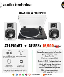 เครื่องเล่นแผ่นเสียง Audio Technica AT-LP70XBT Black + ลำโพง Audio Technica AT-SP3X White (New)
